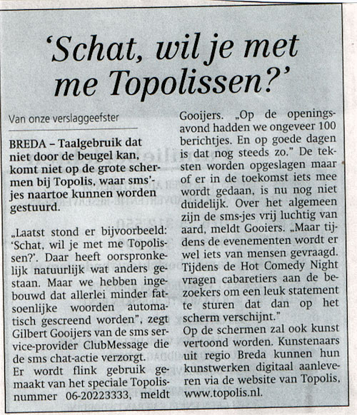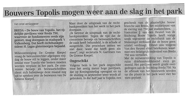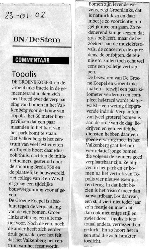 "Topolis krijgt vorm" (02-2002 BN/deStem)