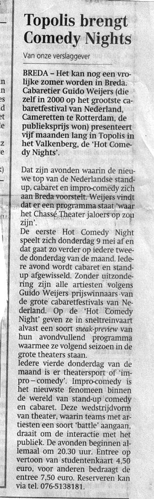 "Topolis brengt Comedy Nights" (05-2002 BN/deStem)