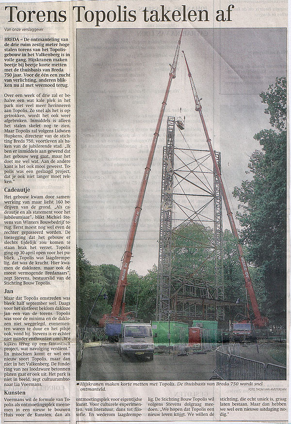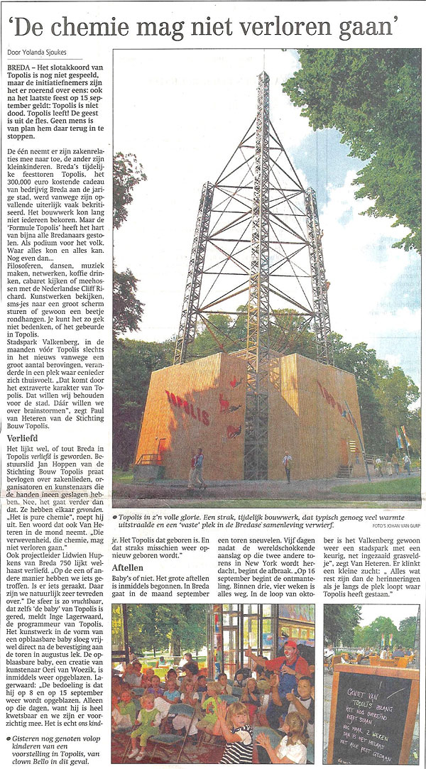 "Torens Topolis takelen af" (10-08-2002 BN/deStem)