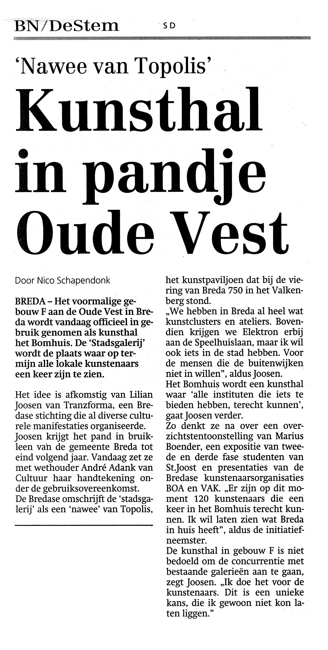 "Kunsthal in pandje Oude Vest" (11-10-2005 BN/deStem)