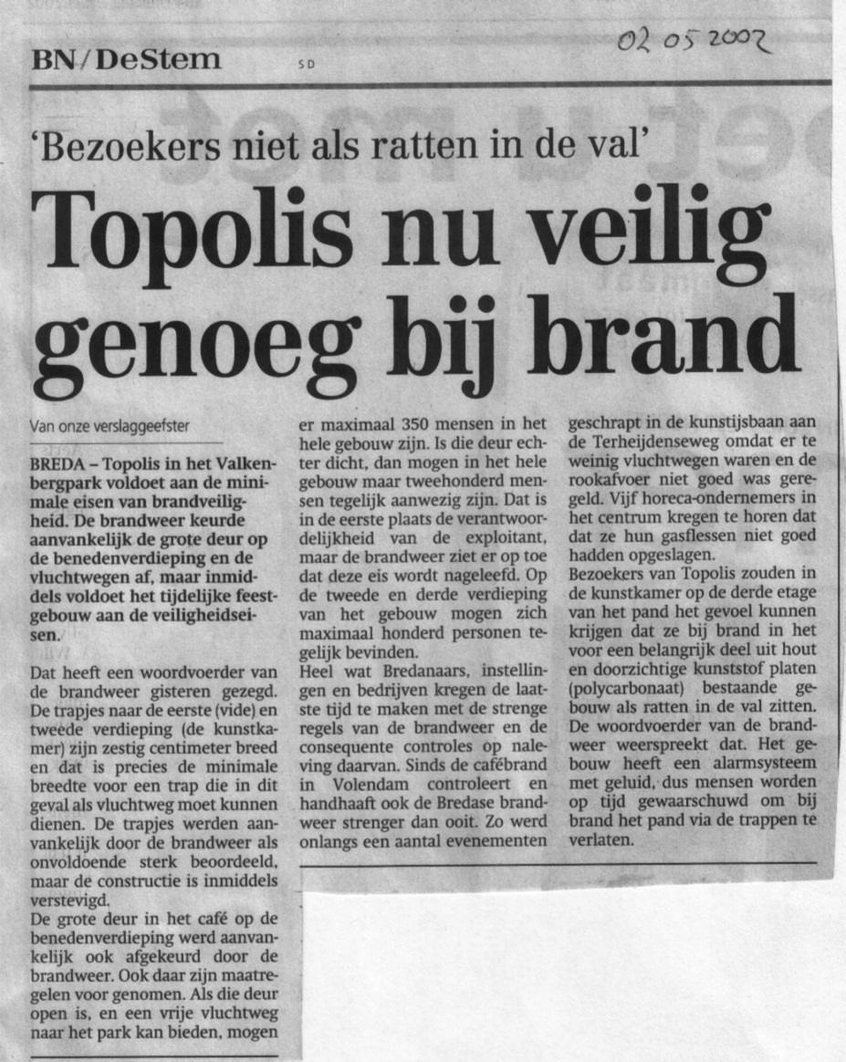 "Topolis nu veilig genoeg bij brand" (02-05-2002 BN/deStem)