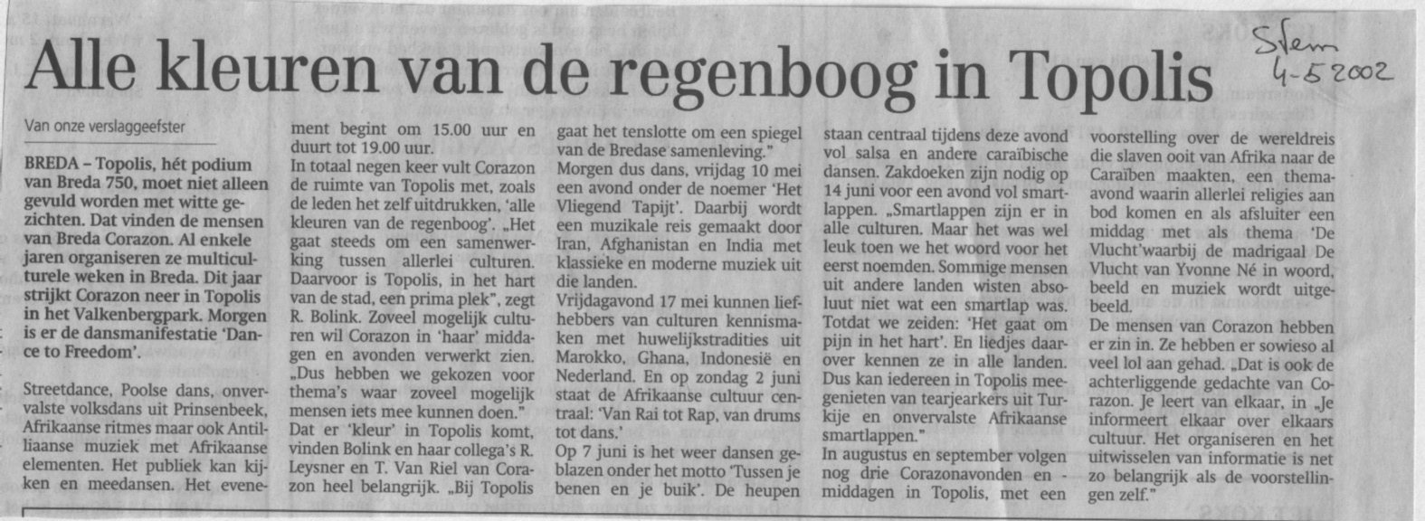 "Alle kleuren van de regenboog in Topolis" (04-05-2002 BN/deStem)