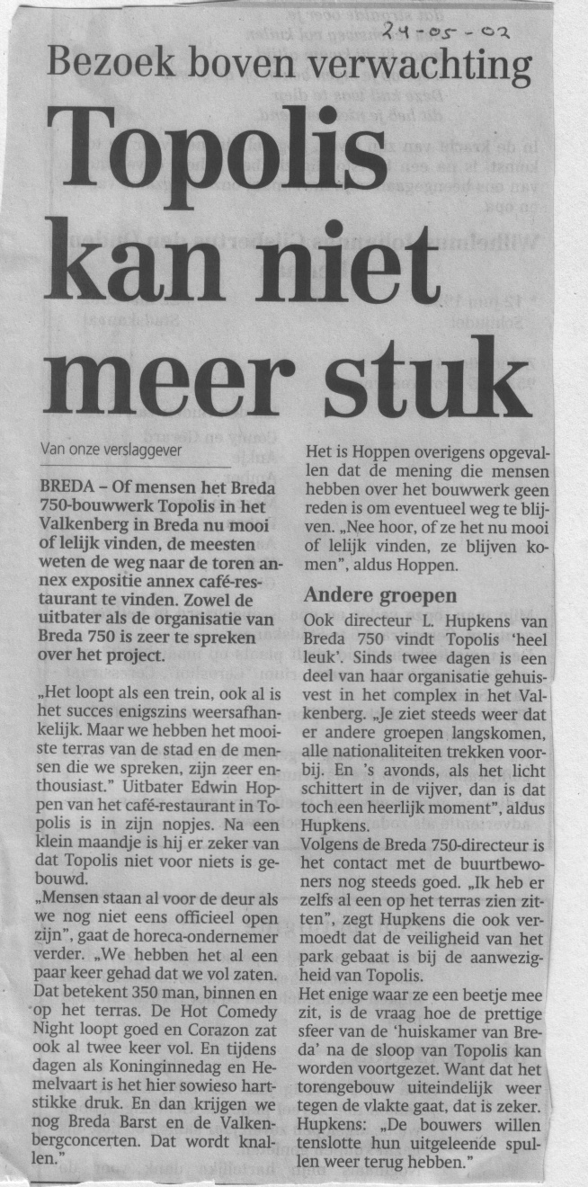 "Topolis kan niet meer stuk" (24-05-2002 BN/deStem)